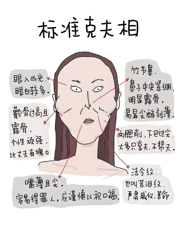 克亲克友:三白眼者易导致亲友疏远,四白眼者甚至被称“刑夫”,可能引发家庭悲剧(如私奔、杀夫等极端事件)。