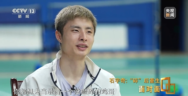 石宇奇:竞技体育就是这样,因为冠军只有一个。都想去当最后一个没砸碎的“鸡蛋”。但是一筐“鸡蛋”砸到墙上,有哪个真的不会碎吗?所以很难挑出一个很坚硬的“鸡蛋”出来。所以只能通过不断黏合、重复,经历困难,有可能你会得到你想要的目标,也许你会一直碎在那里。黏起来,就是重新站起来、重新接受自我,如果没有黏起来,就是放弃了。