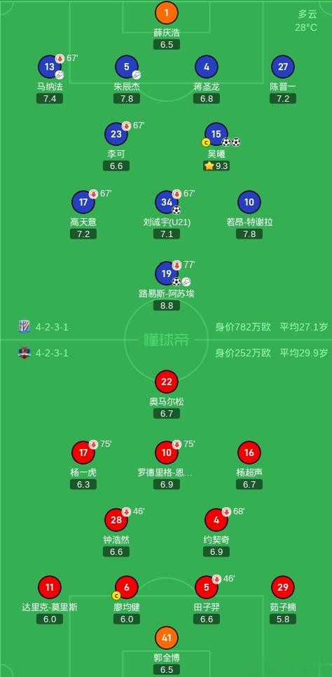 随着本场比赛结束,双方动态评分也随之出炉:上海申花队长吴曦梅开二度获评9.3分,荣获本场比赛最佳球员,阿苏埃一球一助攻获评8.8分,梅州客家茹子楠5.8分最低。