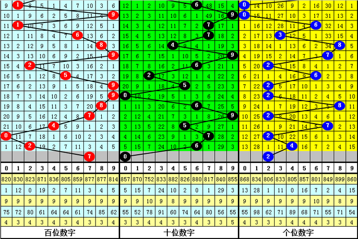 号码012路比为9:5:7,本期预计该位开出偶号,参考号码2。