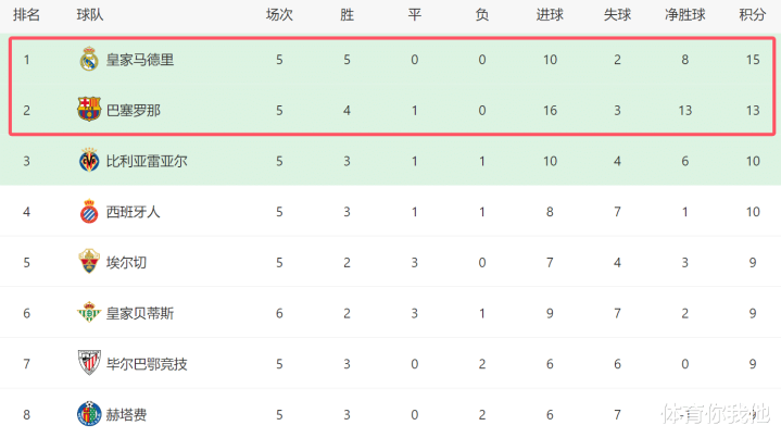 本场过后,巴萨前5轮4胜1平拿到13分,继续追赶榜首的皇马。在西甲积分榜上,皇马5场全胜,以15分毫无悬念排名第一,巴萨落后对手2分屈居第二。由于开局低迷,马竞前5轮过后才拿到6分,已经被榜首两强彻底甩开。赛季才开始1个月,西甲又变成了“二人转”。